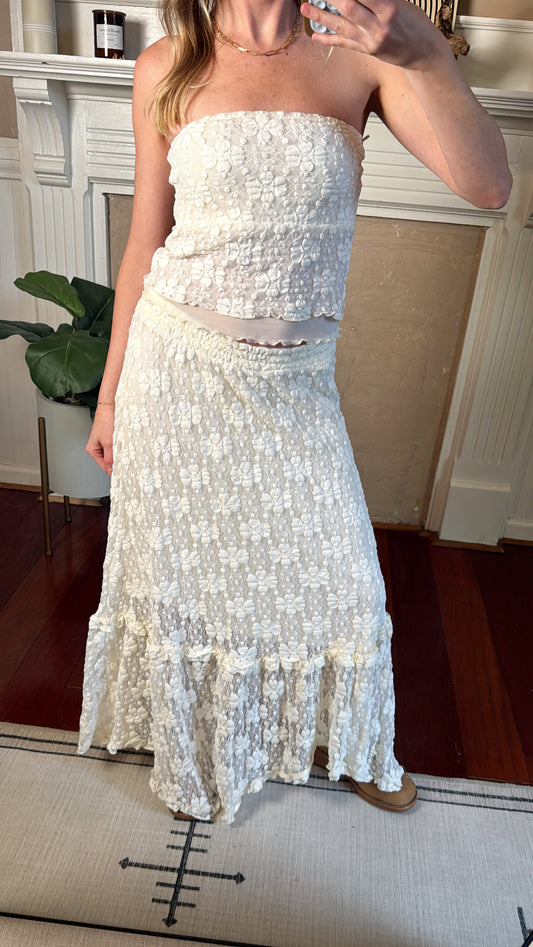 Gisele Floral Lace Tube Top and Skirt Set
