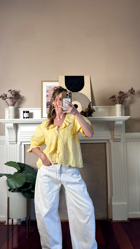 Daisy Embroidered Collar Button Blouse