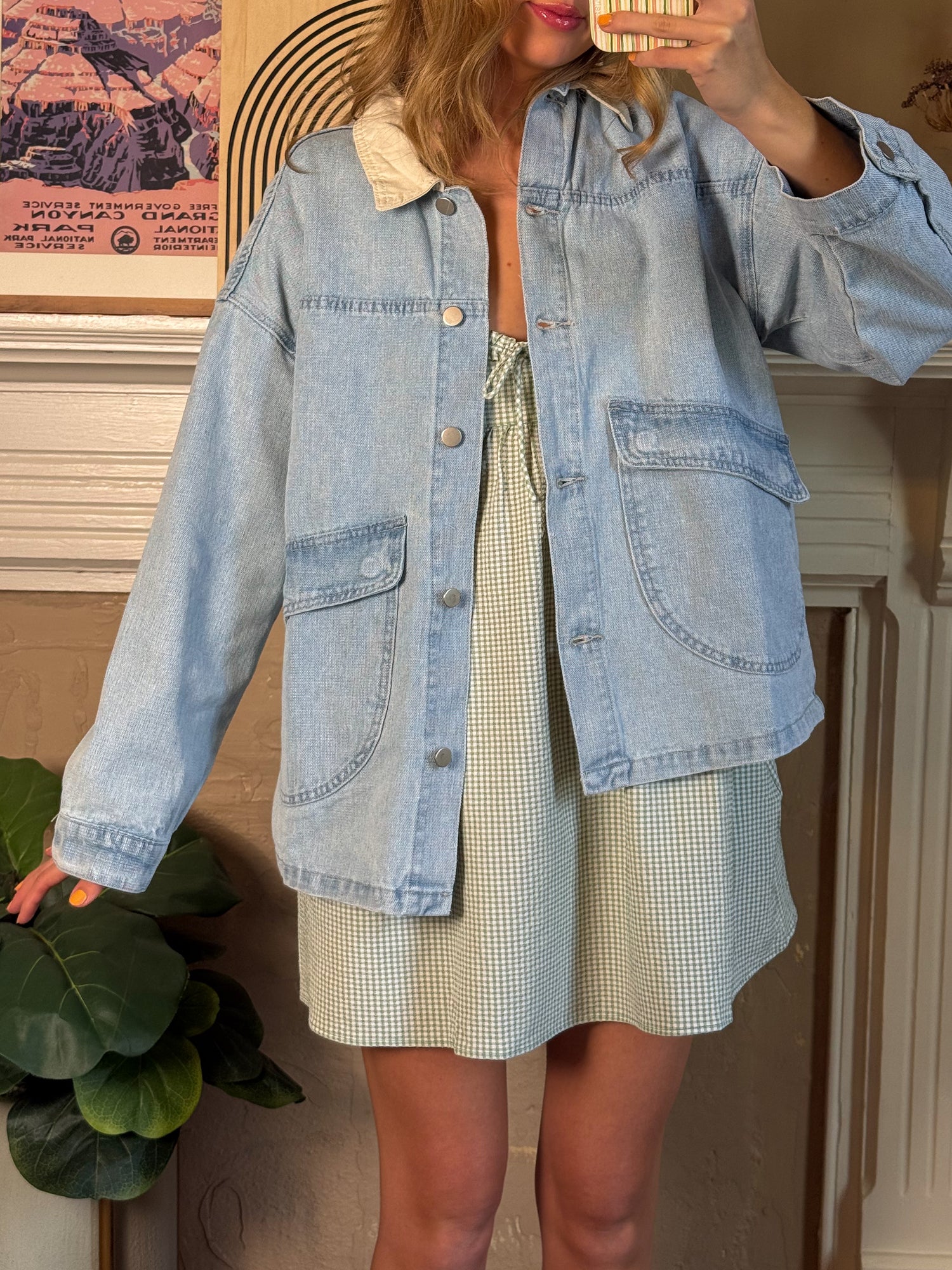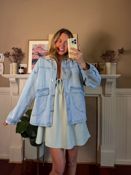 Contrast Collar Light Wash Denim Jacket