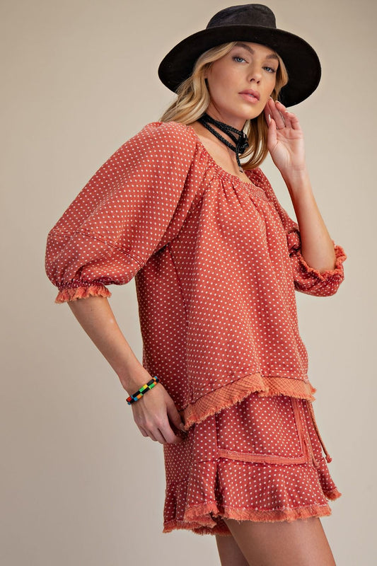 Polka Dot Top and Shorts Set - Crimson