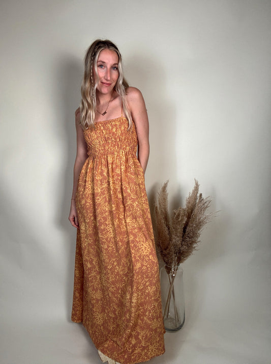 Tropical Smocked Midi Dress