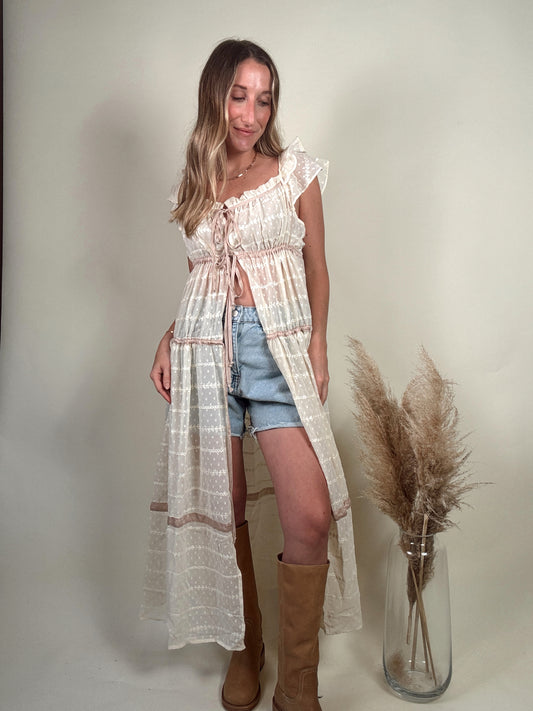 Aristelle Sheer Front Tie Maxi Blouse