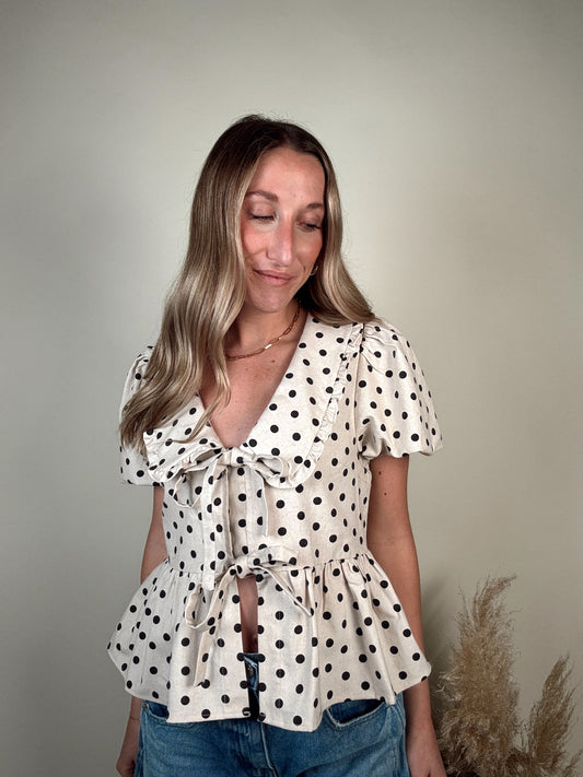 Polka Dot Linen Blouse