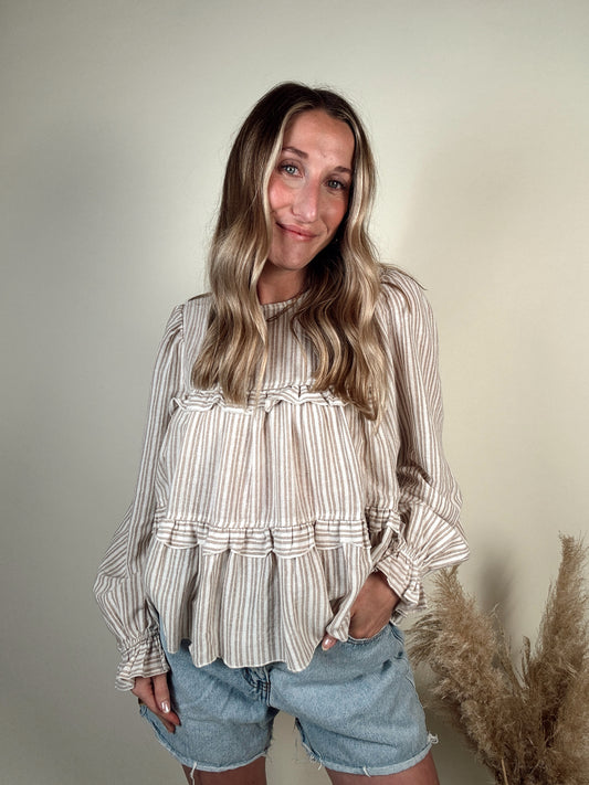 Sold outSavannah Striped Ruffle Blouse