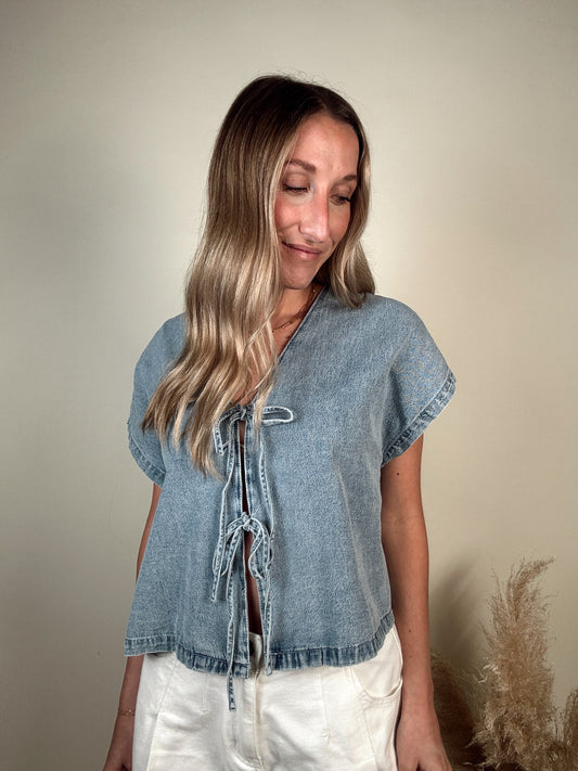 Sold outDenim Tie Blouse