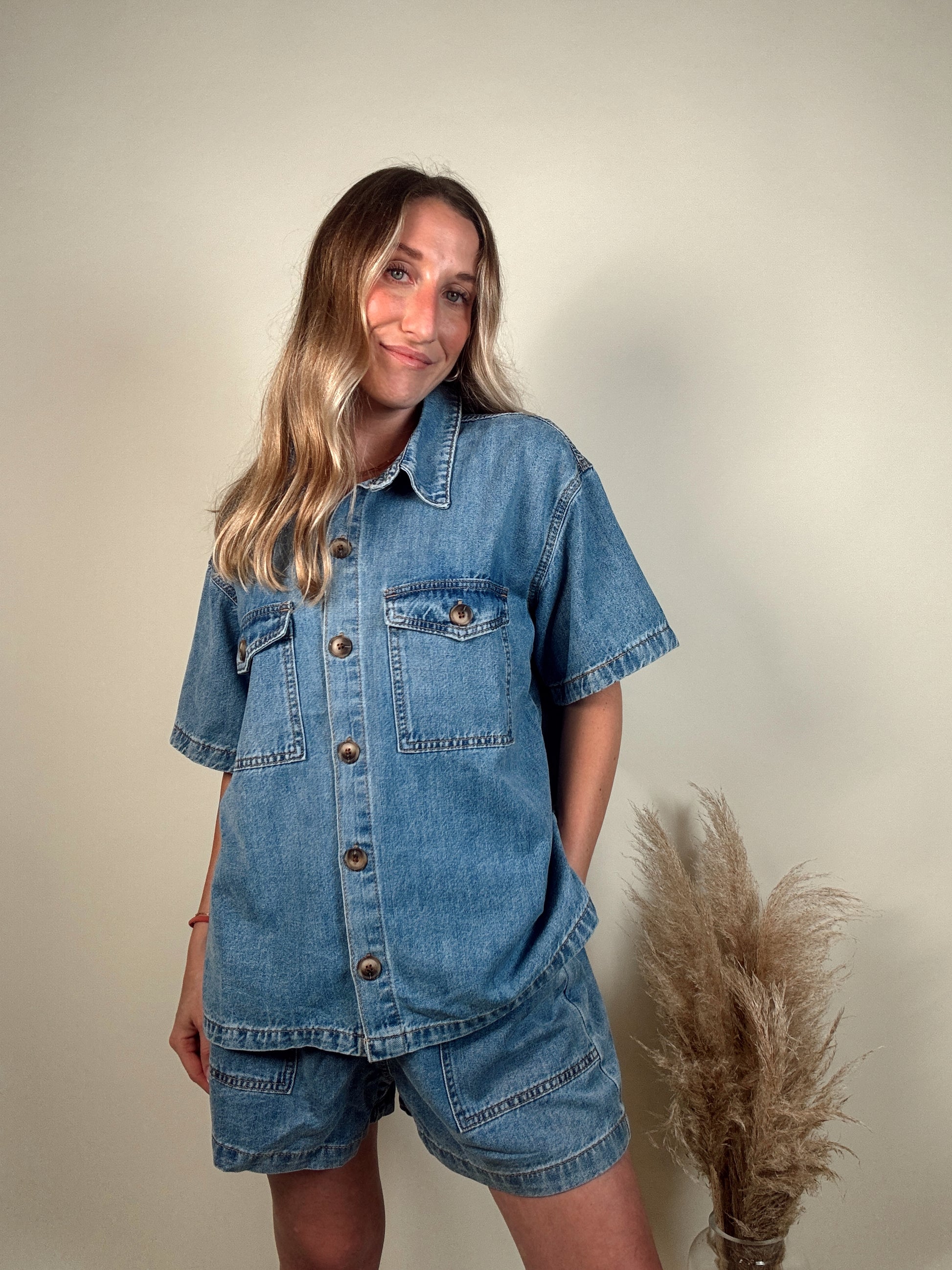 Daisy Duke Denim Top and Shorts Set - Light Wash