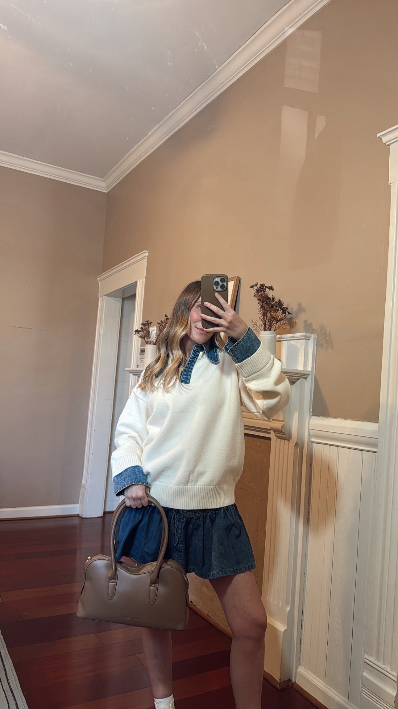 - Sweater with Denim Collar and Cuffs