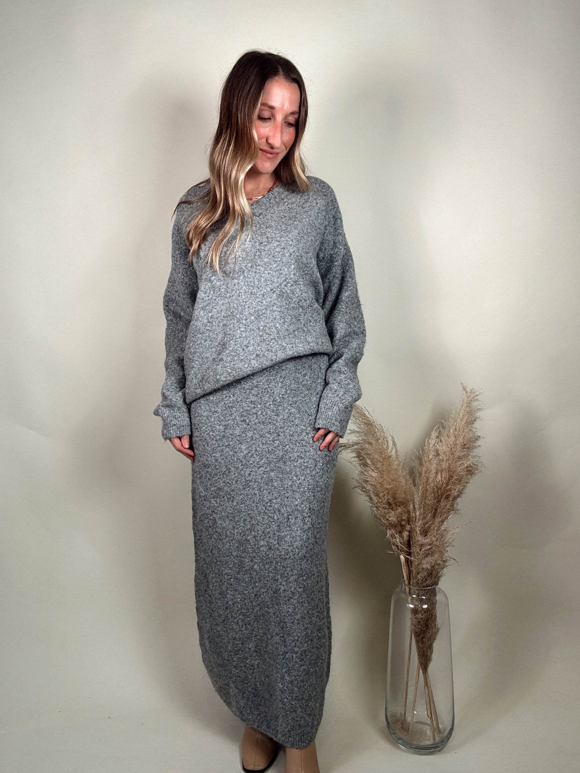 - 2 Piece Knit V-Neck Sweater and Skirt Set