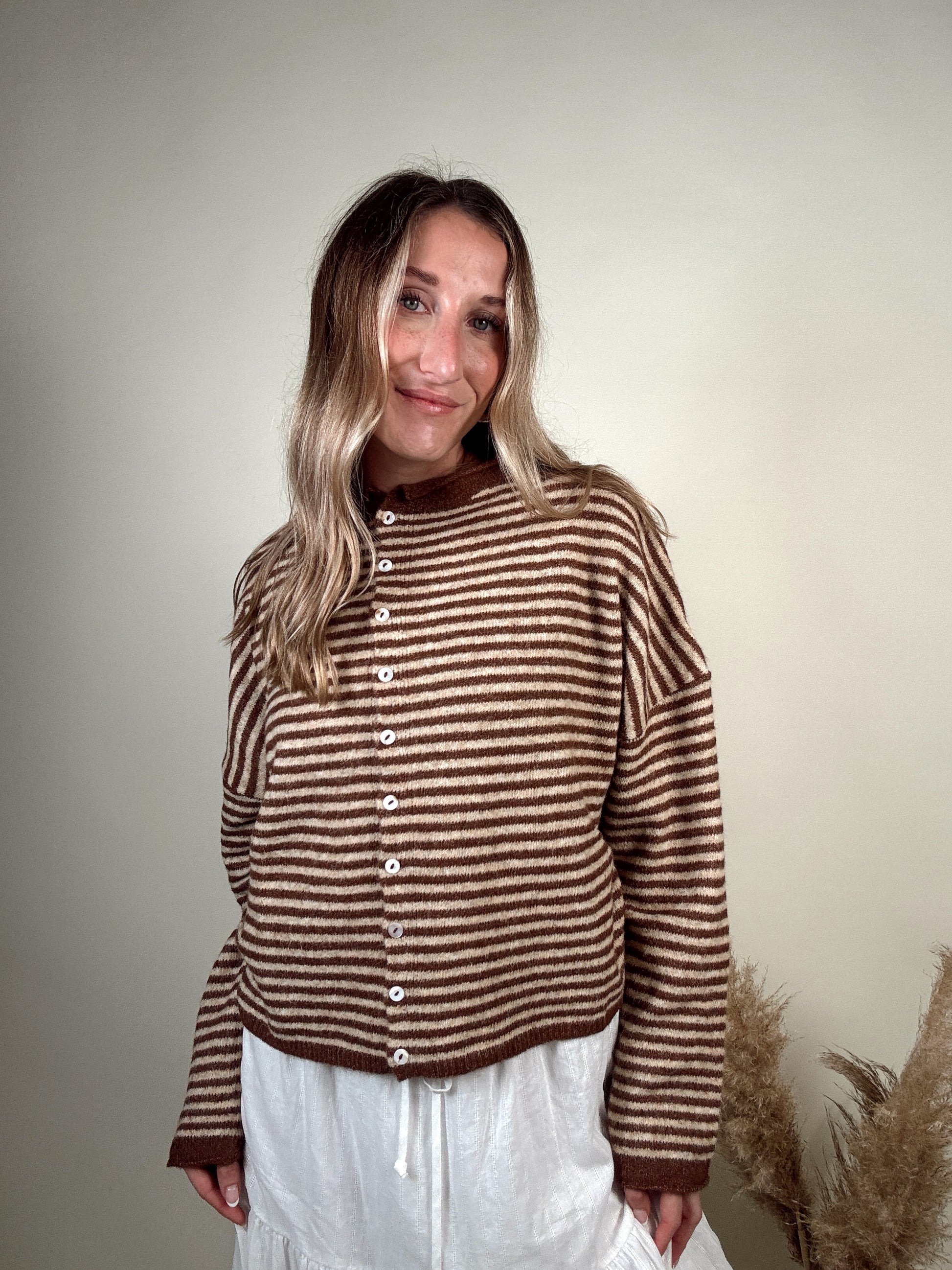 Nola Cardigan - Mini Striped Brown