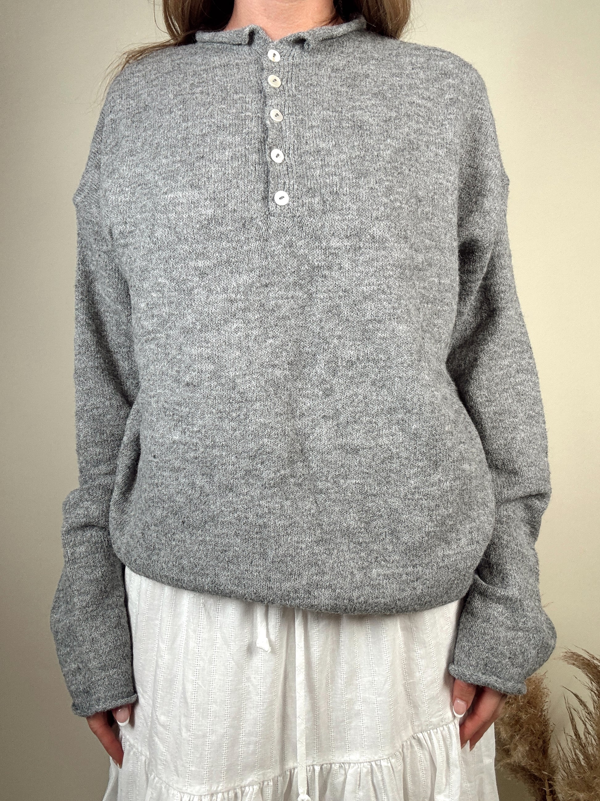 Nola Henley Pullover - Heather Grey